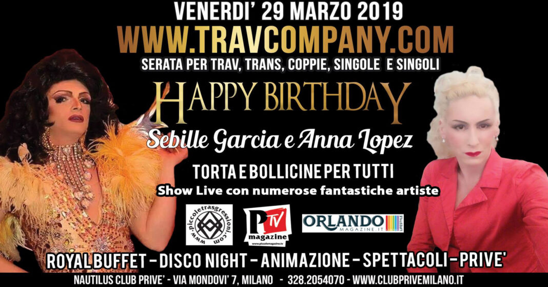 Ti invitiamo a trascorrere con noi una fantastica serata per FESTEGGIARE IL COMPLEANNO DI Sebille Garcia direttrice artistica del Nautilus Club di Milano e Organizzatrice di Travcompany.com
