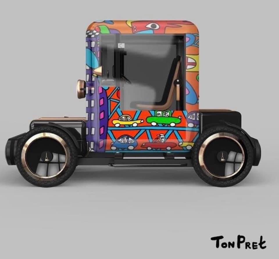Lo stile di Ton viene definito “realismo colorato di una realtà diversa, con un forte effetto positivo” che sulla carrozzeria è una specie di narrazione visiva in movimento, il cui linguaggio si sviluppa in una fusione di figure fantasiose che trasmettono entusiasmo e positività, donando un messaggio di libera felicità che risulta essere contagioso.