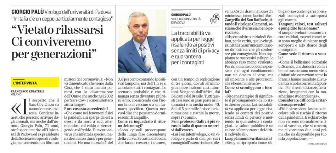 Ci saranno altri casi? Sì. Ci saranno nuovi picchi? Sì. Ci saranno altri morti? Sì. Serviranno misure di contenimento? Sì. Serviranno le misure individuali? Si. Serviranno le mascherine? Si, ma con buonsenso e senza paranoie. Serviranno lockdown duri generalizzati? No. Servirà l’obbligo di stare a casa? No. In nessun Paese c’è stata o c’è l’apocalisse. L’Italia non è una caserma. Nel 2019 abbiamo avuto 634.000 morti, nel 2020 … vedremo.