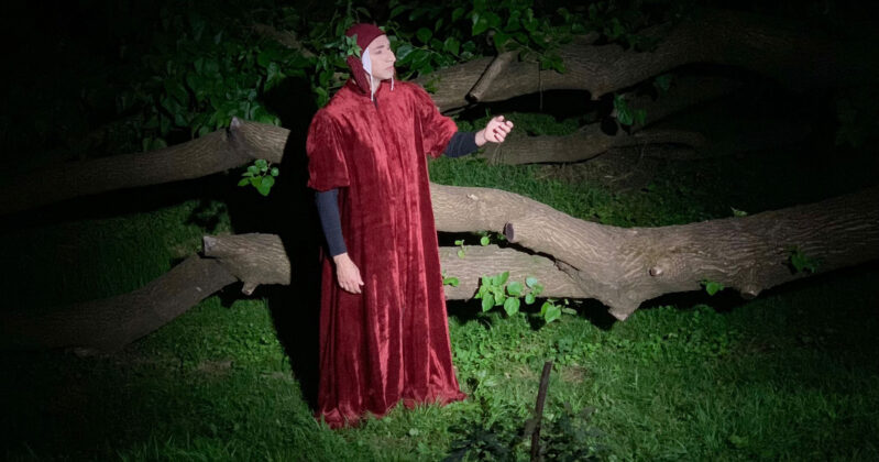 Nell’anno dedicato a Dante e dopo due mesi di una seguitissima tournée nazionale, è andato in scena al Parco naturale della Mandria presso Venaria, “INFERNO”, la nuova produzione estiva di Anà-Thema Teatro – compagnia di teatro d’arte friulana – che da ormai quattordici anni si è specializzata nello spettacolo itinerante.