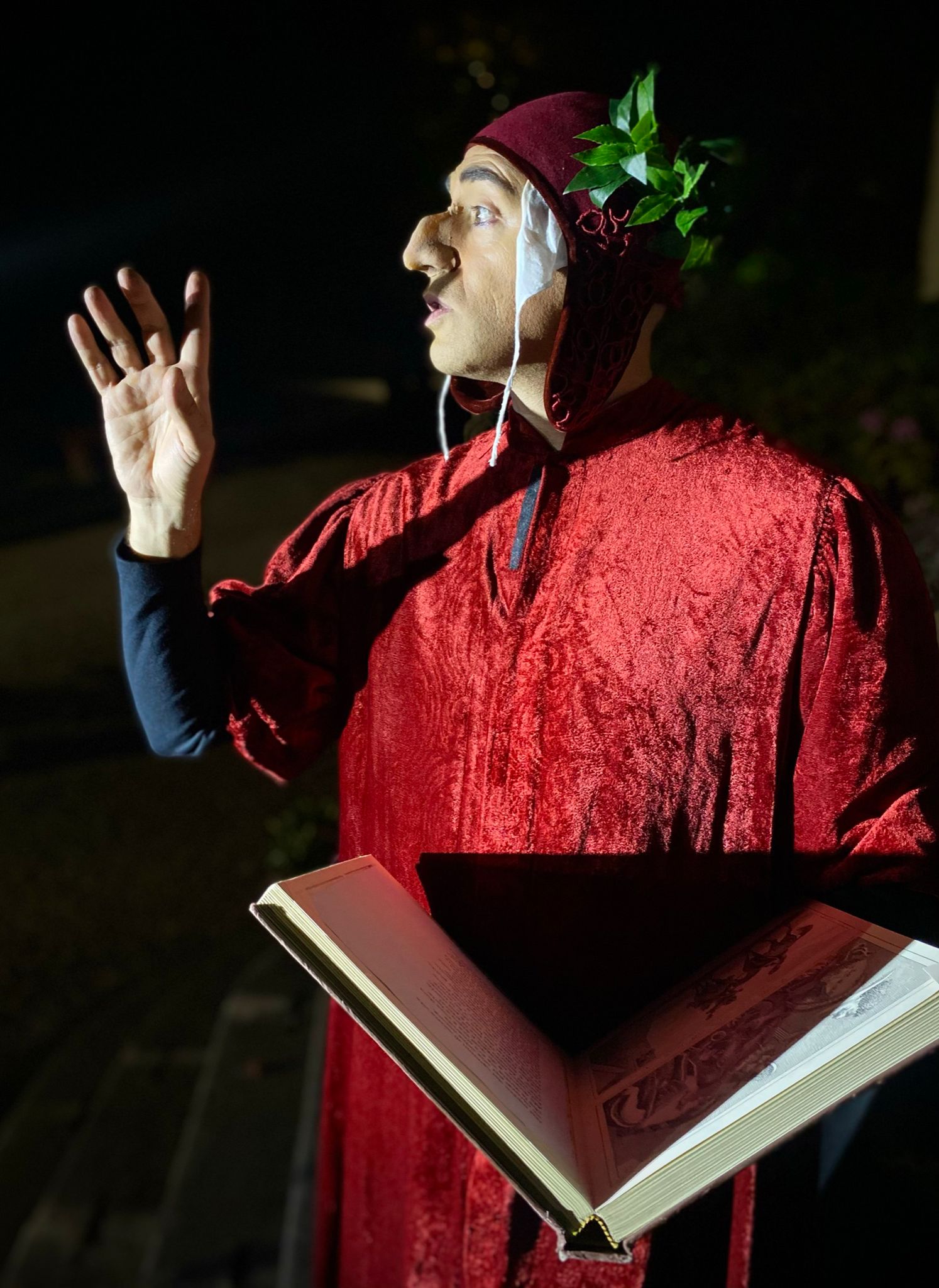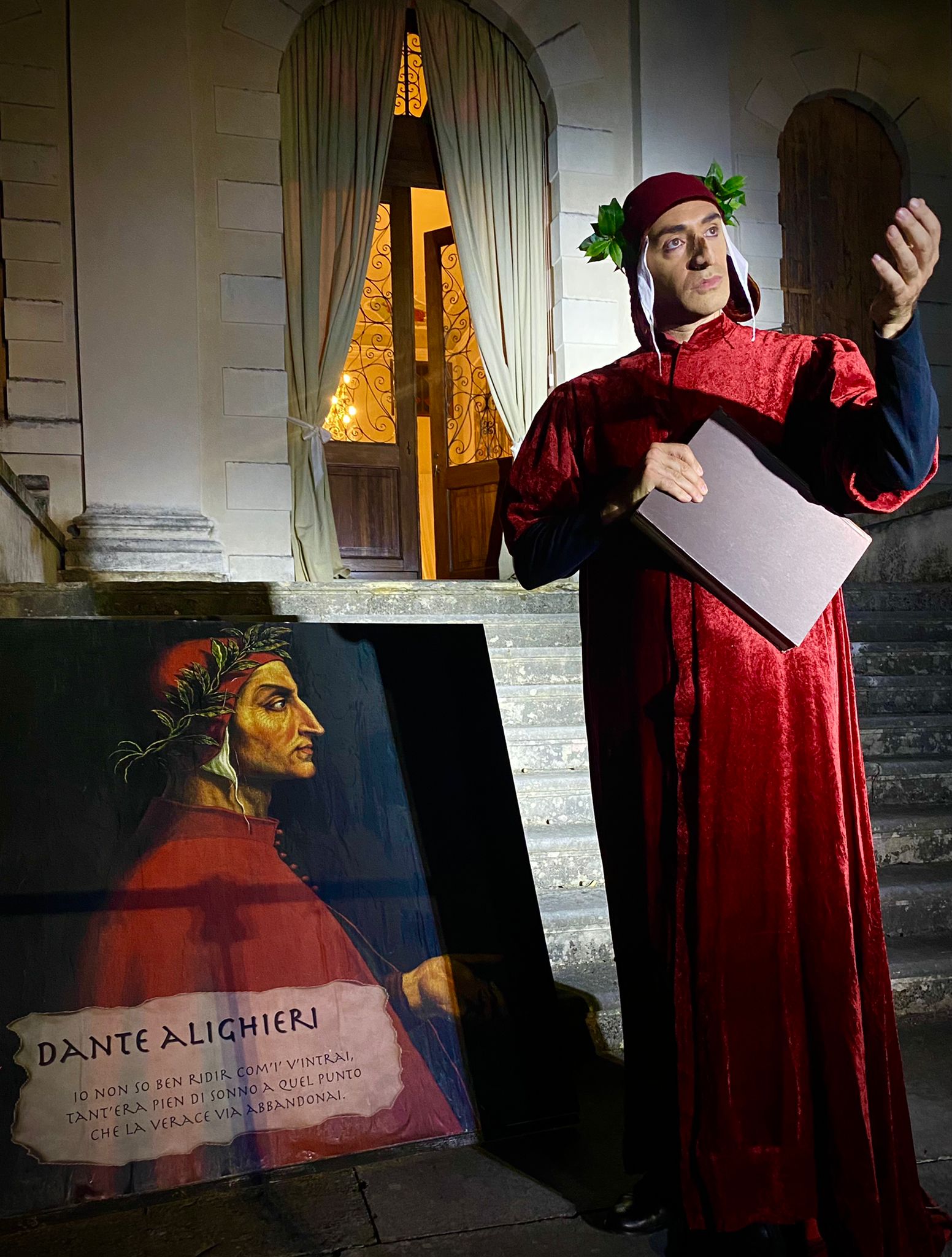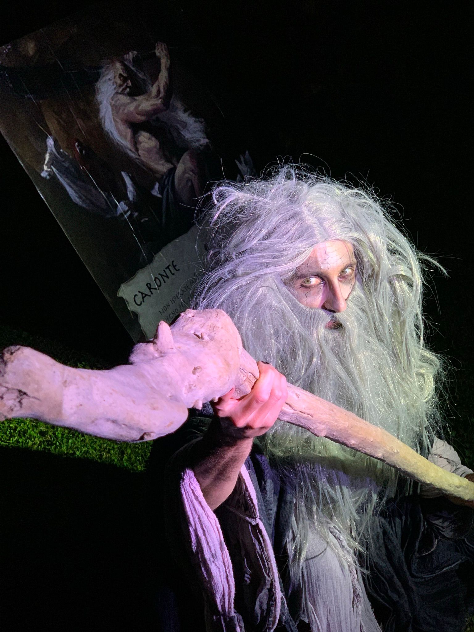 Ispirato ai personaggi e alle atmosfere dantesche, “Inferno” ha dato vita ad un momento d’intrattenimento emozionante: gli attori, guidati da Dante Alighieri in persona, hanno decantato i versi del sommo poeta dalle loro postazioni arricchite da elementi di luce e scenografici. Così durante il percorso abbiamo incontrato Virgilio, Paolo e Francesca, Ulisse, Caronte, Minosse, Il Conte Ugolino e la bella Beatrice. I monologhi di vario genere e stile, passano dalla divertente commedia a momenti più impegnati a pezzi cantati e suonati dal vivo.