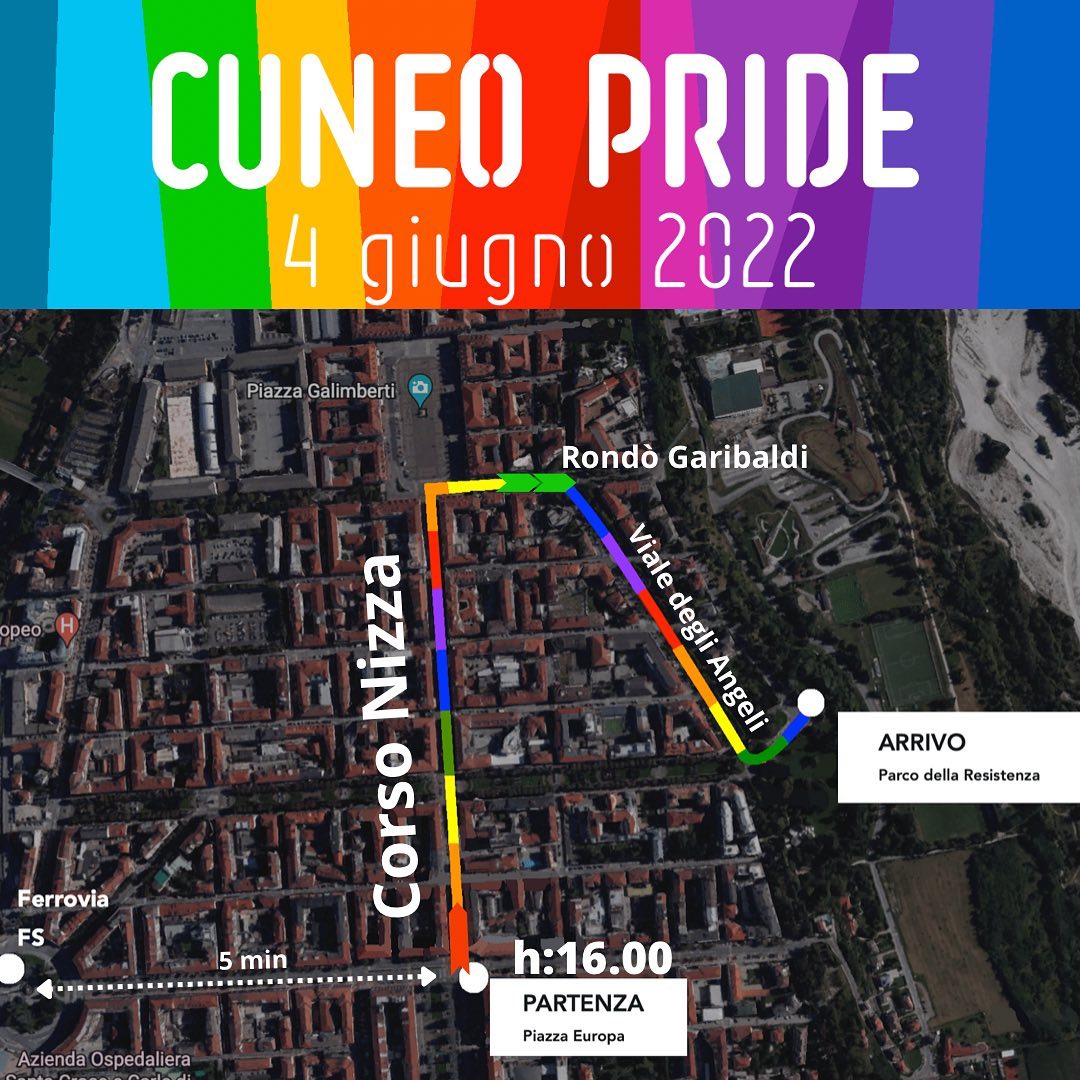 Il pride partirà da Piazza Europa alle ore 16 sino al Parco della Resistenza, passando per corso Nizza,Piazza Galimberti, Rondò Garibaldi e Viale degli Angeli.