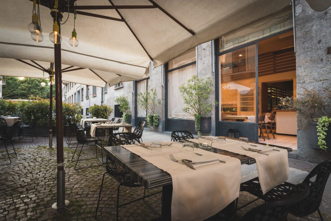 Il locale si fa subito notare per un eleganza ben al di sopra della media, con arredi minimal curati fino all’ultimo dettaglio; il numero di coperti non è certo particolarmente ampio peraltro garantendo un ambiente intimo agli avventori e riducendo al minimo la confusione. E’ peraltro possibile desinare in un dehor altrettanto ben curato, affacciato su una via tranquilla e pressoché priva del fastidioso passaggio di automobili. Inutile dire che il livello di pulizia rispetta gli elevatissimi standard che un ristorante del genere deve necessariamente proporre, ed i bagni non sono certo da meno.